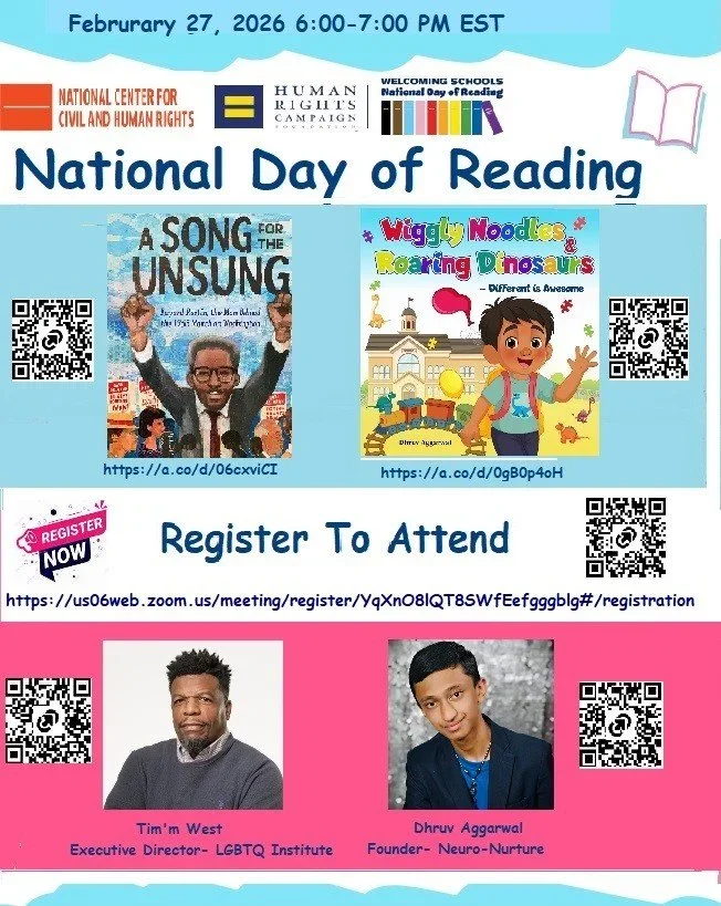 The event included readings of two children’s books. The Executive Director of the LGBTQ+ Institute at the National Center for Civil and Human Rights shared A Song Unsung, a tribute to Rustin’s life and impact. National Youth Advocacy Fellow Dhruv Aggarwal then read from his own book, Wiggly Noodles & Roaring Dinosaurs, celebrating curiosity, imagination, and neurodiversity, and spoke briefly about his work.